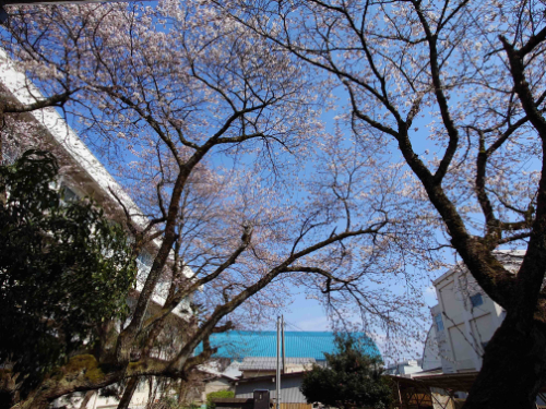 56年前の1967年(昭和42年)に校舎竣工記念樹として植えられた中庭の桜が開花しました。