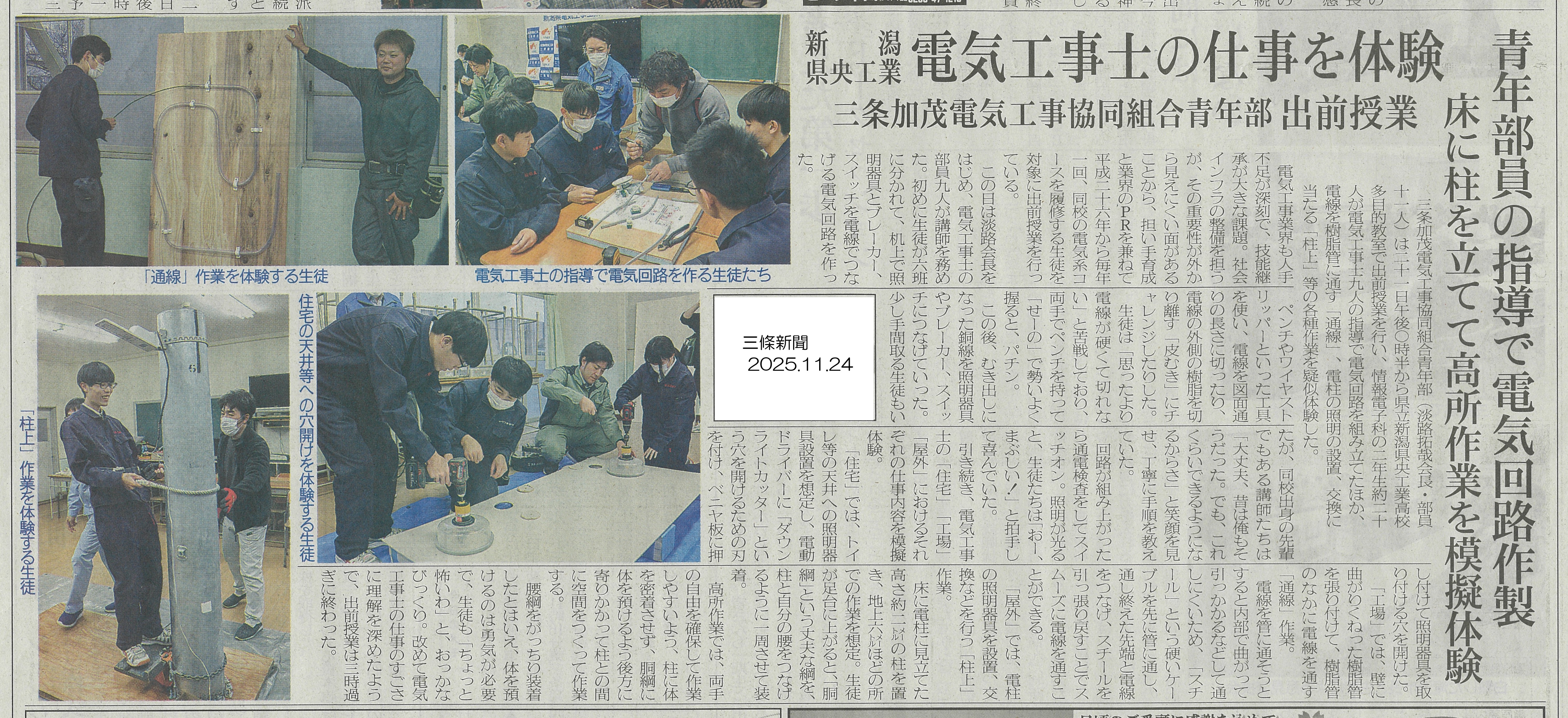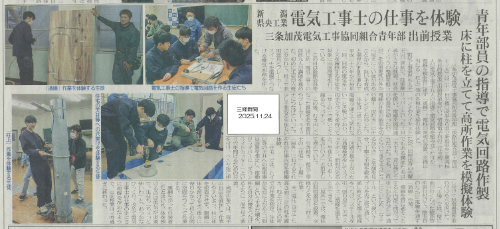 詳細は https://www.kenoh.com/2025/12/14_toolbeltg.html - 2025.11.21 三条加茂電気工事協同組合青年部が出前授業を行いました