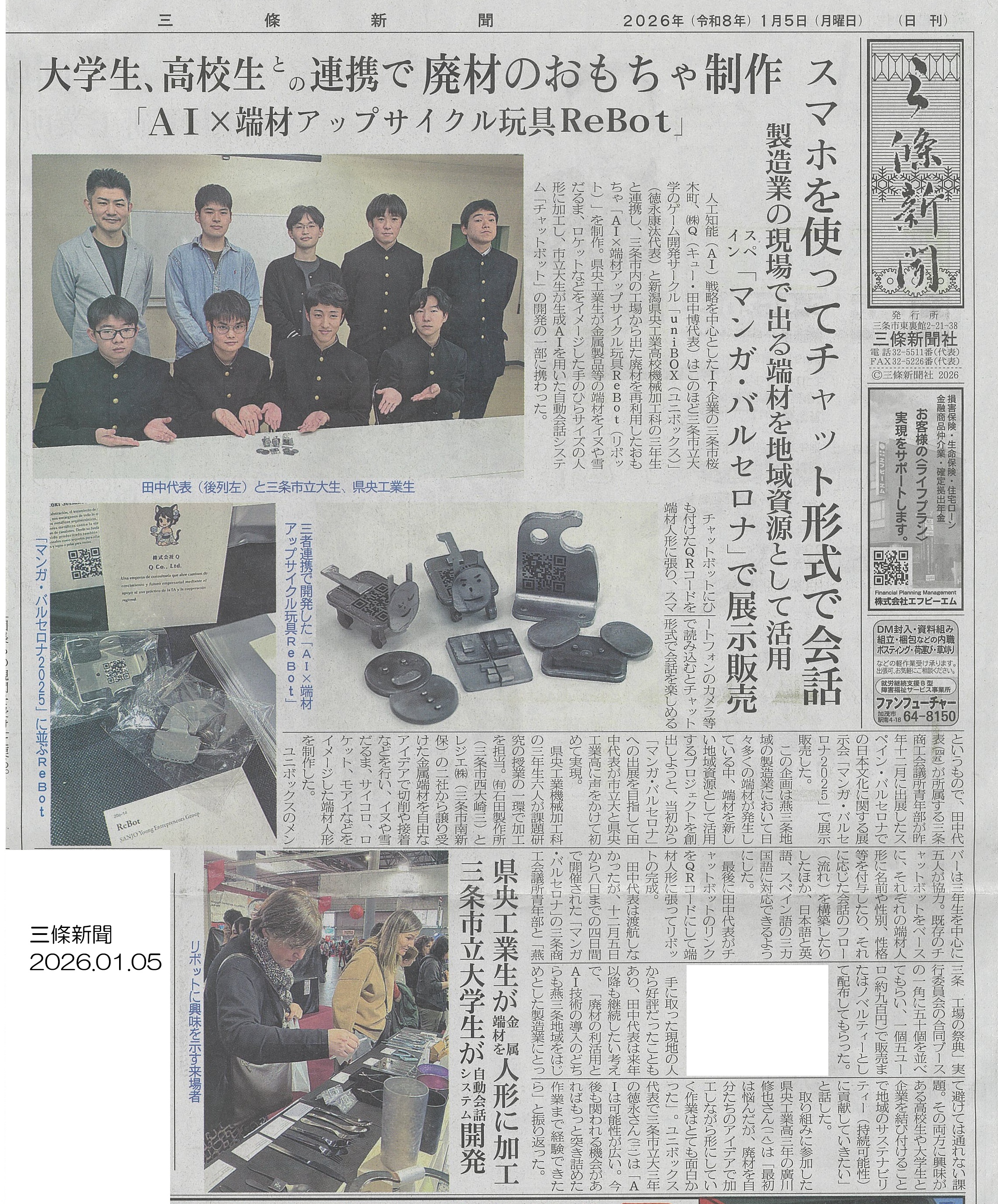 3月12日、三条市の主催による「ジモトnoオシゴト展in新潟県央工業高校」の記事が三條新聞に掲載されました。